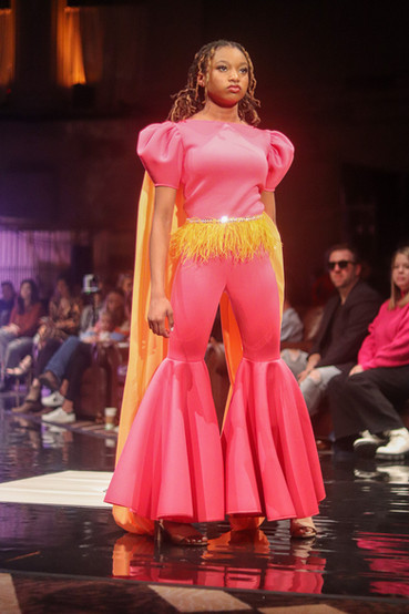 Upon arrival, the line for guests wrapped around the building. Thank God my team arrived first because by the time I got there the "The Pit" was full to capacity. And as always, I was informed about the "Pit Tyrant." The show this season did not have an elevated runway platform. They created the runway based on the venue’s current carpeting and tiling.