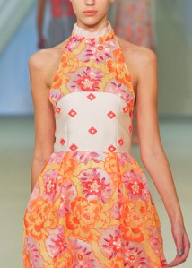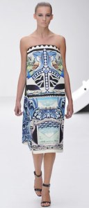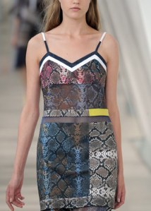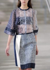 Delicate leafy floral motifs, precise cuts and geometric shapes, bold weave structures, snakeskin both real and printed, and many more gives London fashion the edge and slight twist that many will soon be wearing in the summer of 2013. According to StyleSight.com "new takes on ladylike and modernist looks defined London's shows."